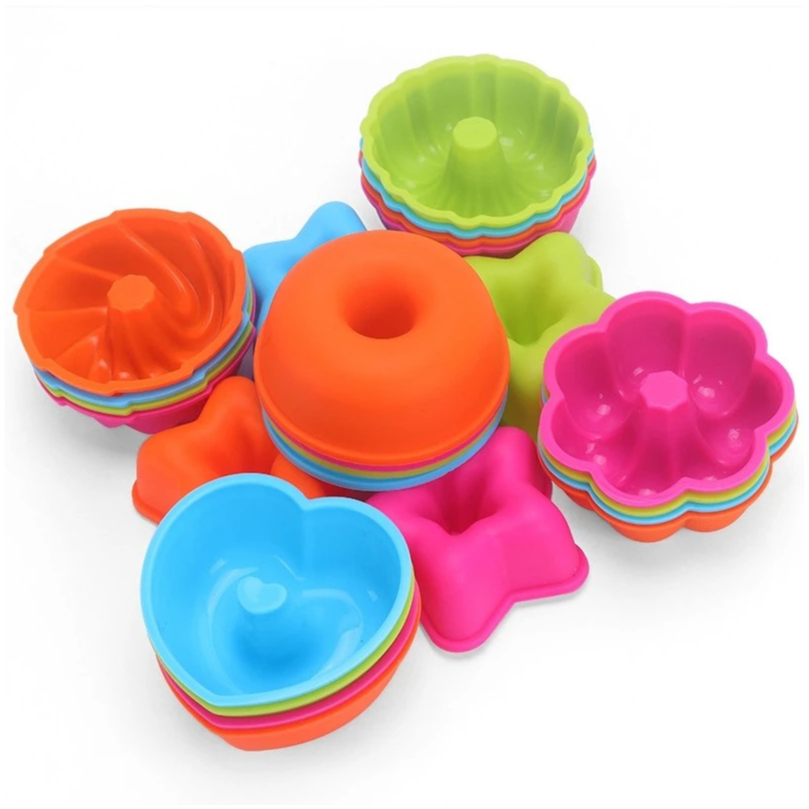 Formas de Silicone Coloridas Bolo Kit 12 Unidades Muffin Cupcake Pudim Donuts Forminhas Molde