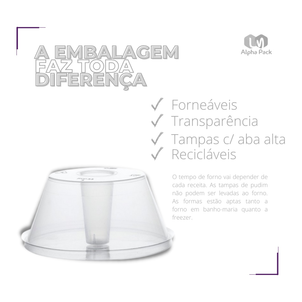 FORMA PARA PUDIM PW64/TWH 550 ML COM TAMPA UNIDADES WER MATERIAL: PP com a tampa em PET TAMANHO : Tamanho da forma 110 mm x 49 mm x 75 mm DESCRIÇÃO: • Capacidade: 550 ml • Junto com a forma vai uma explicação de como utilizá-la – por favor seguir. • Não pode colocar calda muito quente de caramelo na forma, pois poderá, deformá-la • A tampa é em PP e por isto não é resistente ao calor, então após o pudim pronto, esperar um pouco para poder fechar a tampa, para não deformar. • Esta forma não serve para pudim de geladeira, somente para pudim de forno, pois a tampa só fecha na forma após a forma ter ido ao forno. • No meio da forma tem um furo estratégico para que a forma não deforme no forno, por isso, é necessário jogar o líquido na forma pelas lateria para que não haja vazamento na forma • Atenção: O tempo de forno vai depender de cada receita. • Colocar o pudim até a borda da forma, principalmente em forno turbo. • Colocar em banho maria, e deixar a água o mais próximo da borda possível. • Para um pudim mais claro, cobrir com um papel alumínio durante o cozimento. IDEAL PARA: • Pudim • Doce que vá em banho maria