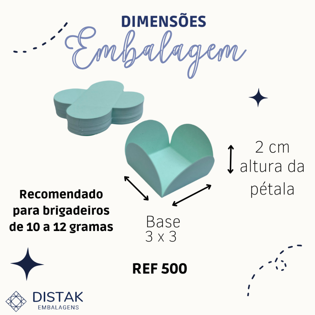 Forminha 4 pétalas papel Off set 150g - tinta atóxica Ótima qualidade ****DIMENSÕES: 3,0 x 3,0 x 2 cm**** Ideal para docinhos de 10 a 17g Vale lembrar que o peso varia de acordo com os confeitos (granulado , M&ms e etc. acabam gerando mais volume) ****Pacote com 2000 unidades = 40 pacotinhos**** Temos também anúncios com: 50 forminhas (1 pacotinho) 100 forminhas (2 pacotinhos) 250 forminhas (5 pacotinhos) 500 forminhas (10 pacotinhos) 1000 forminhas (20 pacotinhos) 2000 forminhas(40 pacotinhos) 5000 forminhas (100 pacotinhos) COMO COMPRAR: No momento da compra, ao selecionar uma cor e colocar no carrinho, o kit todo será enviado na cor selecionada! Na opção sortido sem escolha, as forminhas são enviadas aleatóriamente de acordo com o nosso estoque do dia. Na opção cores no chat, as cores devem ser enviadas com o nome igual ao da paleta de cores e deve ser enviado IMEDIATAMENTE após o pagamento, depois que o pedido for preparado não será possível a troca de cores. Caso não seja enviado as cores no chat, iremos enviar cores sortidas. ****ACETATO NÃO INCLUSA NESSA OPÇÃO .**** * As cores podem sofrer alterações entre a foto e o produto físico! * 500 - Jm Distak