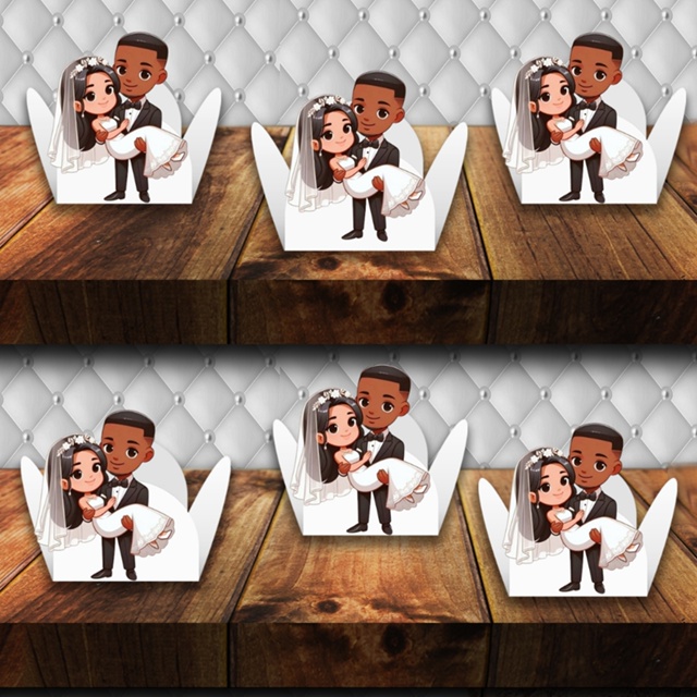 Forminha com aplique para casamento 50 unidades Tamanho da forminha 3 cm de fundo x 2 cm de altura Tamanho ideal para docinhos tradicionais de festa. Tamanho do aplique mais ou menos 4 cm Impresso em papel brilhante.