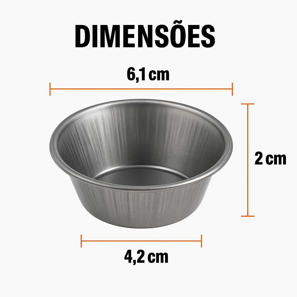 Produto com qualidade garantida pela Marília Utilidades – referência em formas para empada no Brasil, enviado direto da fábrica. PERFEITAS PARA EMPADINHAS, SALGADOS E USO PROFISSIONAL **Destaques do produto:** • Alta qualidade: aço flanders resistente, com excelente condução de calor • Tamanho / Medidas: - Diâmetro superior: 6,1 cm - Fundo: 4,2 cm - Altura: 2 cm • Desenforma fácil: ideal para empadas, quiches e mini tortas • Versátil: festas, casamentos, vendas ou uso diário • Garantia de 90 dias contra defeitos de fabricação **Por que escolher nossas forminhas?** • Acabamento profissional nas suas receitas • Praticidade e agilidade no preparo • Serve para doces, salgados, eventos e revenda **Cuidados para durar mais:** • Lave com sabão neutro (evite abrasivos) • Seque bem após o uso • Armazene em local seco, sem empilhar com peso • Use utensílios de silicone ou madeira