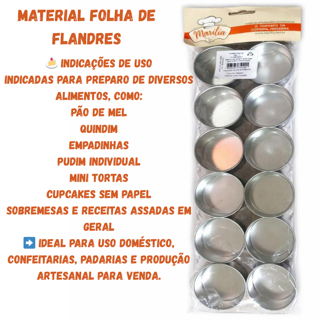 🧁 Mini Formas Redondas de folha de flandres – Praticidade e Perfeição nos Detalhes Prepare receitas lindas e no tamanho ideal com as mini formas redondas de alumínio, perfeitas para quem busca praticidade, acabamento profissional e resultados impecáveis. Produzidas em alumínio resistente, garantem aquecimento uniforme, deixando seus bolos, pudins, mini tortas e sobremesas bem assados por igual. O tamanho compacto é ideal para porções individuais, festas, lembrancinhas, vendas ou uso doméstico. Além de funcionais, são leves, fáceis de manusear e de limpar, tornando o preparo muito mais prático no dia a dia. ✨ Destaques do produto: Material: Alumínio de alta qualidade Folha Flandres Formato: Redondo Ideal para: bolos, pudins, tortinhas, sobremesas e porções individuais Distribuição uniforme do calor Resistente, durável e reutilizável Fácil de limpar e armazenar 🍰 Perfeita para confeiteiros, cozinhas domésticas, festas e produção para venda. Um item essencial para quem ama cozinhar com praticidade e capricho!