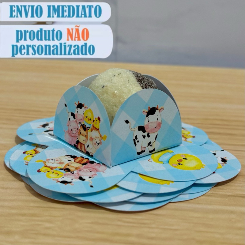 Forminha Personalizada para Docinho Fazendinha Azul Menino Forminha temática para Brigadeiro Pétala festa aniversário