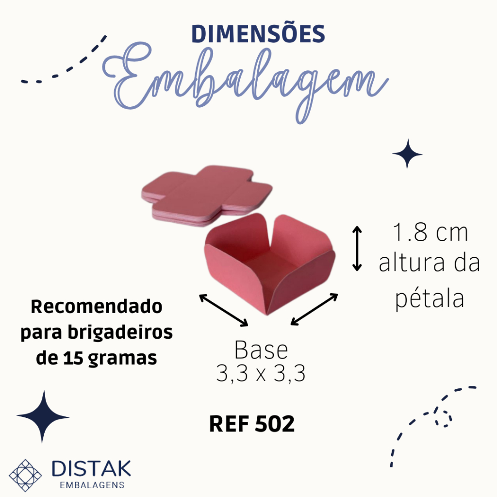 | Forminhas 4 petalas (3,3 x 3,3 cm) - 50 Unidades - Ref 502 Jm Distak este produto | R$ 6,90 | — | 5.0/5 | 17 |