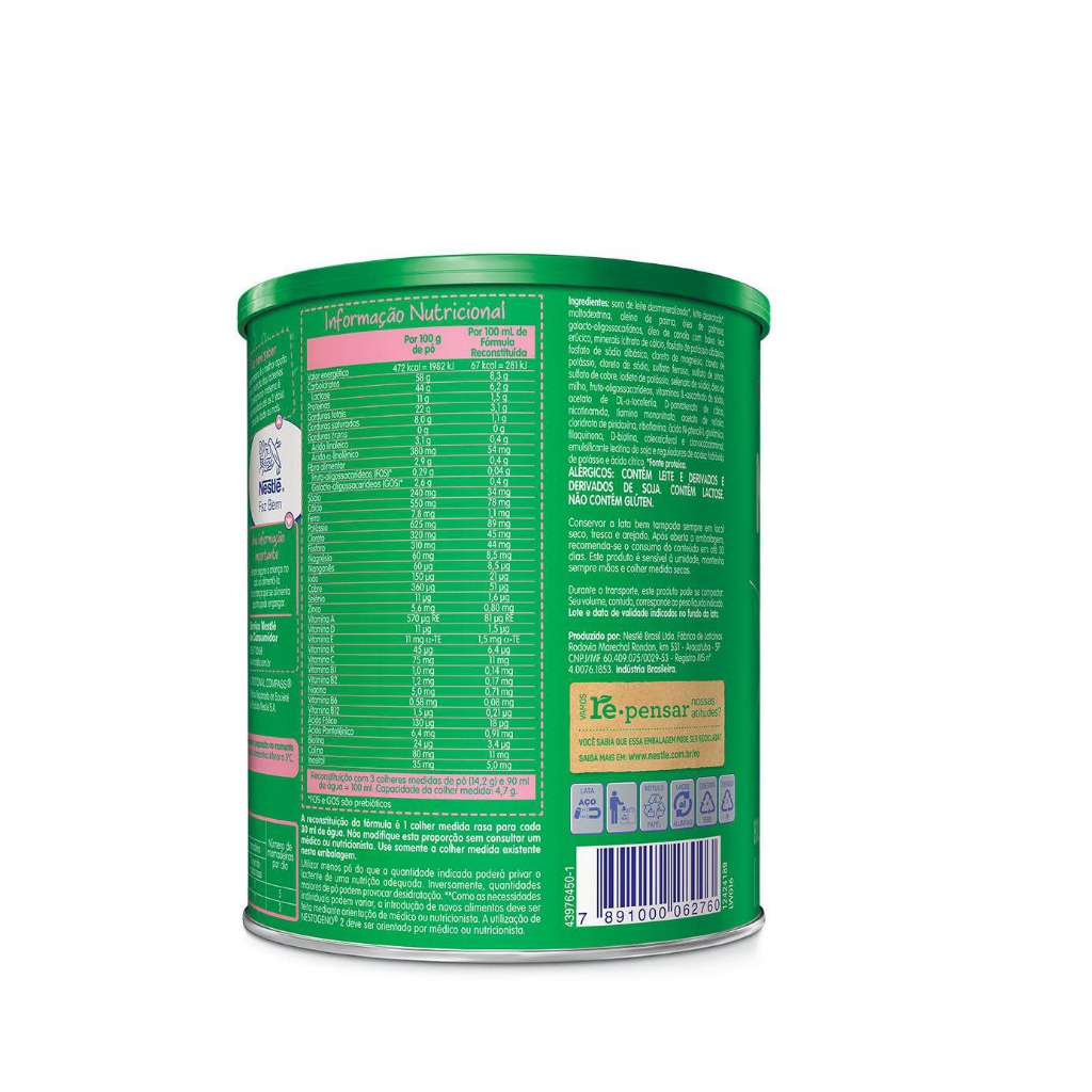 Descrição NUTRIÇÃO COMPLETA PARA SEU BEBÊ! Proporcione o melhor para o seu bebê com a Fórmula Infantil Nestogeno 2 da Nestlé! Especialmente desenvolvida para lactentes de 6 a 12 meses, esta fórmula é rica em proteínas, vitaminas, minerais e ferro, garantindo uma nutrição completa e equilibrada. Além disso, é uma fonte importante de prebióticos, que ajudam a manter a saúde intestinal do seu pequeno. Escolher Nestogeno 2 é investir no crescimento saudável e feliz do seu bebê. Com a qualidade e confiança da Nestlé, você pode ter a certeza de que está oferecendo o melhor. Compre agora e assegure que seu bebê receba todos os nutrientes essenciais para um desenvolvimento forte e saudável! Aviso legal • Deve ser administrado sob supervisão médica. • O Ministério da Saúde informa: o aleitamento materno evita infecções e alergias e é recomendado até os 2 (dois) anos de idade ou mais.