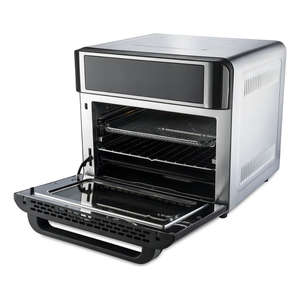 Uma cozinha versátil e moderna essencial, o novo Forno Air Fryer Hamilton Beach foi projetado para cozinhar todos os tipos de alimentos em menos tempo! Com uma grande janela de visualização, você pode observar todo o preparo, com 12 funções pré-definidas, deixando o preparo ainda mais fácil, você pode fritar, assar, grelhar, com muito mais facilidade. O Forno Air Fryer Hamilton Beach ajudará você a cozinhar seus alimentos favoritos de maneira mais saudável. O forno Air Fryer adota o princípio de ar quente combinado com circulação de ar de alta velocidade, conveniente para você de forma saudável, rápida e para cozinhar todos os tipos de alimentos. Características : - Tela digital LED-MULTIFUNÇÕES; - Capacidade: 25L; - Timer de 60 minutos, com desligamento automático; - Observe as refeições durante o cozimento; - Possui função de desidratar, 40-80o; - Função de forno e air fryer, 80o - 200o - 12 funções pré-definidas: Batata frita, carne, frango a passarinho, frango, peixe, camarão, pizza, pães, bolo, bacon, biscoitos e desidratadora -Pés antiderrapantes. Conteúdo da embalagem: 1 - Forno Air Fryer 25L 127v 1 - manual e os seguintes acessórios: 1 - Grelha, 1 - cesto de fritura, 1 - espeto rotisserie, 1 - assadeira, 1 - bandeja coletora de migalhas 1 - pegador de bandeja. Dimensões (C x L x A): 43,5cm x 40,5cm x 37cm Peso Líquido (kg): 10