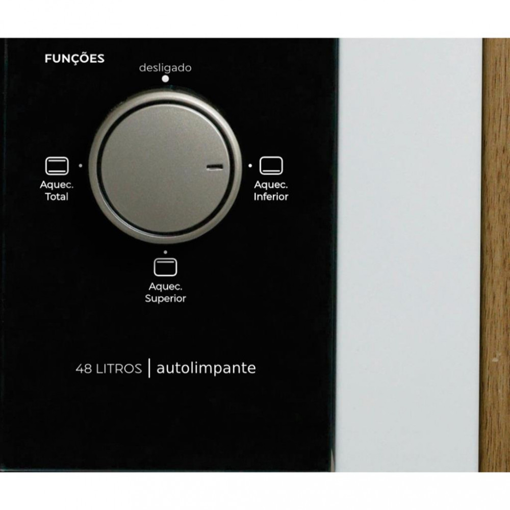 Se deseja um forno elétrico com diversas funcionalidades e modernidade, temos a opção perfeita: Forno Elétrico de Embutir Fit Line! Ele apresenta controle automático de temperatura, timer de 0 a 2 horas (com aviso sonoro), lâmpada interna, seletor de funções, controle automático de temperatura, isolamento térmico total, bandeja para resíduos esmaltada, grade cromada removível e porta com vidro duplo, que impede a fuga de calor e economiza energia. O corpo interno é autolimpante e a potência total é de 1775 W. Características: Potência 1775W Assa, doura, tosta, gratina e aquece Luz piloto (indica quando o forno está ligado) Lâmpada interna que facilita a visualização dos assados, com proteção de vidro Timer com programação de até 120 minutos com aviso sonoro Controle automático de temperatura 50°c a 320°C Três funções de assado, aquecimento superior, aquecimento inferior e aquecimento total Abertura da porta vertical Isolamento térmico Puxador em alumínio anodizado escovado Corpo externo em aço pintado branco Porta com vidro duplo serigrafado Pés antiderrapantes Resistência blindada Grade cromada removível Bandeja para resíduos esmaltada removível Corpo interno com revestimento autolimpante a limpeza ocorre através do processo de volatilização Dimensões do nicho de instalação (AxLxP): 39x60x57cm. Dimensões: Altura: 42 cm Largura: 66,5 cm Profundidade: 55 cm Peso: 16,05 kg Garantia do fornecedor de 12 meses