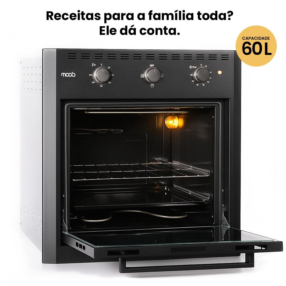 Forno Elétrico de Embutir Moob Luz Interna e Função Grill 60 Litros Preto 220V