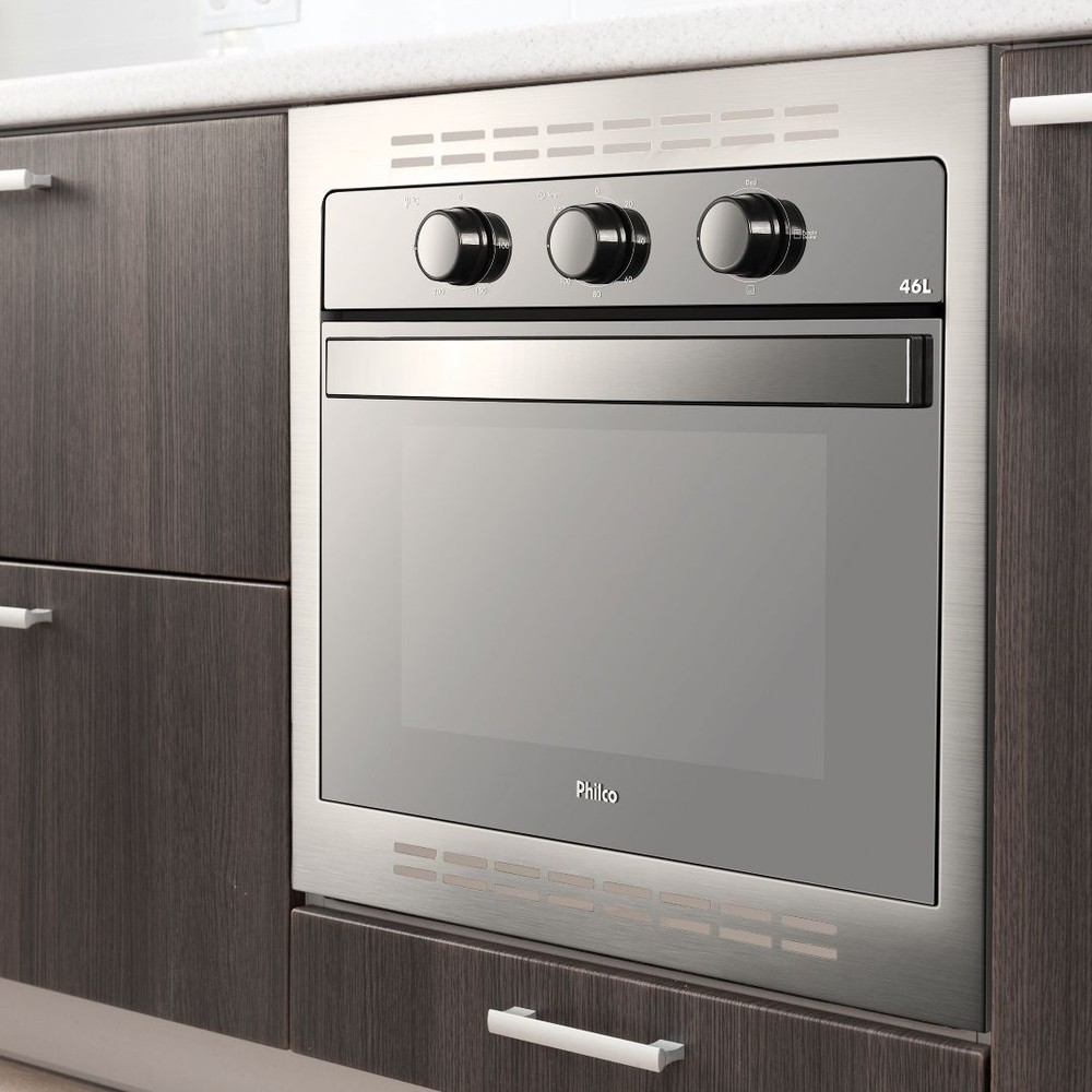 Forno Elétrico de Embutir Philco 46 Litros Agora você vai conseguir preparar receitas deliciosas e variadas. O Forno Elétrico de Embutir Philco 46L chegou para te ajudar nessa missão! - Ele é multi-funções, aquece, assa, tosta, doura, gratina e grelha. - E para deixar o seu alimento do jeitinho que você gosta, conta com a função dourar, que deixa tudo douradinho e bem crocante. - Também oferece função timer de 120 minutos com desligamento automático, proporcionando praticidade para programar o preparo de diversas receitas. - E para facilitar o manuseio e o acesso ao alimento, possui grelha deslizante com regulagem de altura. - Além da luz indicadora de funcionamento e luz interna, onde, de maneira prática, você pode verificar o alimento enquanto está sendo preparado. - Possui ainda 2 resistências, superior e inferior, com controle individual de temperatura, que distribuem melhor o calor. Características - Marca Philco - Modelo 056101041 - Capacidade 46 litros - Tipo Embutir - Cor/Acabamento Prata - Porta Vidro Temperado - Composição Metal, Vidro e Plástico - Revestimento interno Esmaltado - Temperatura 10°C a 230 °C - Voltagem 110v ou 220v (não é bivolt) - Potência 1500w - Consumo 1,5 Kwh Dimensões e Peso - Produto (A x L x P) 43,5 x 53,6 x 45,1 cm - Produto Com Embalagem (A x L x P) 52 x 65,5 x 59,2 cm - Nicho de Instalação (A x L) 48,2 x 57,1 cm - Peso Líquido 13,15 kg - Peso Bruto 18,23 kg Conteúdo da embalagem - 1 Forno Elétrico de Embutir Philco 46 Litros - 1 Grelha em Inox - 1 Coletor de Resíduos - Manual de Instruções Garantia do Fabricante 12 meses