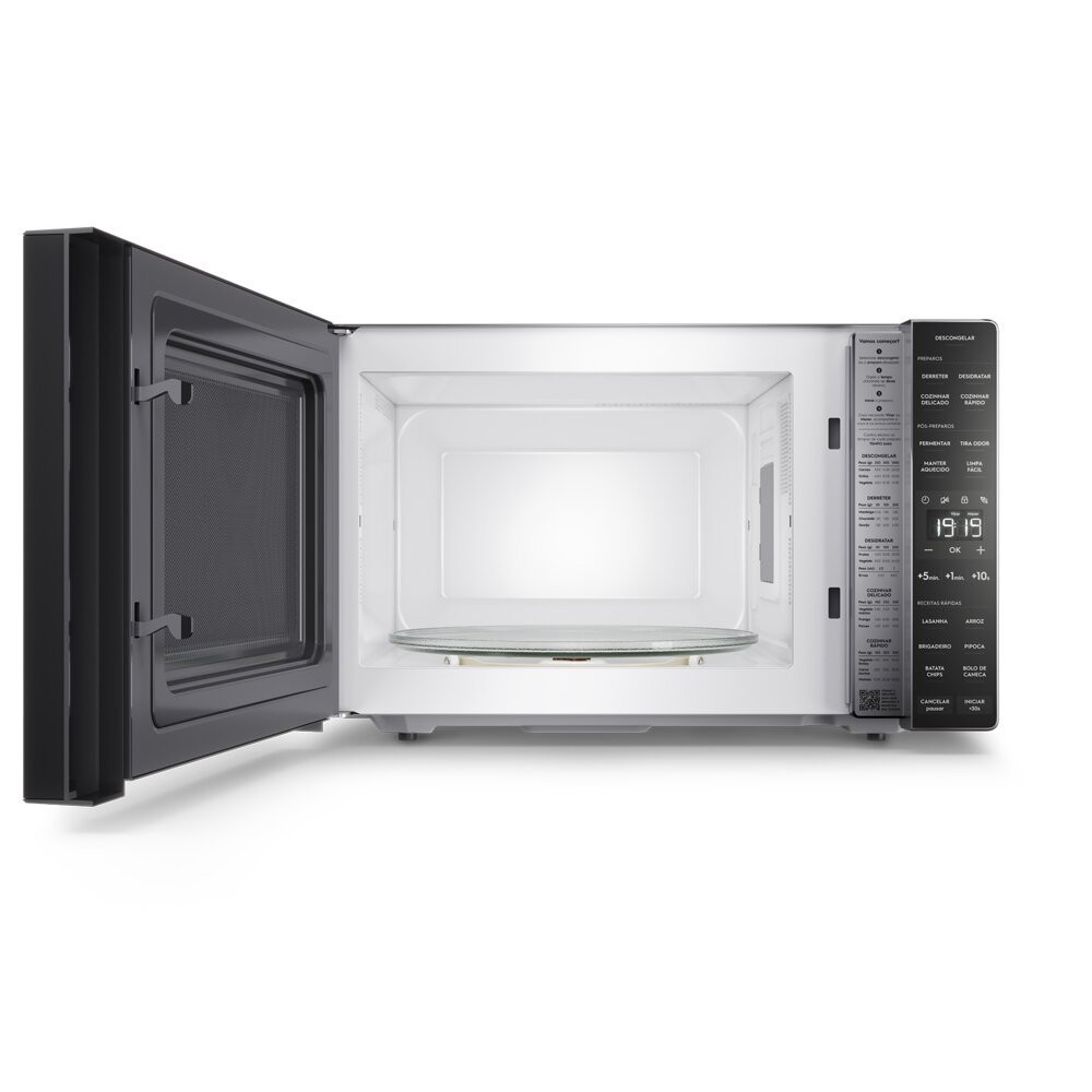 O Forno Micro-ondas Electrolux, Preto é pensado para facilitar sua rotina na cozinha. Aproveite todo o espaço oferecido por um micro-ondas com capacidade de 36L sem deixar de otimizar o espaço de sua cozinha. Possui o descongelamento assistido, com aviso sonoro e luminoso, o micro-ondas orienta quando virar ou mexer os alimentos, para que você tenha um resultado mais uniforme. Caso queira um ambiente silencioso, ative a função mudo para que seu micro-ondas não emita som durante o uso.Contando também com a função limpa fácil, facilitando a remoção de gorduras e respingos provocados pelo uso. Possuindo novos modos de preparo, com o inovador painel inteligente com ajustes automáticos de potência facilita sua rotina na cozinha com as funções Fermentar, Derreter, Desidratar, Cozinhar Rápido e Cozinhar Delicado. Para completar o seu lar, confira nossas categorias de Eletroportáteis e Cozinha. Características: Modelo: ME36S Tipo: Bancada Capacidade: 36 litros Prato: Giratório Diâmetro do prato: 31,5 cm Funções: Descongelar, Cozinhar rápido, Cozinhar delicado, Derreter, Desidratar, Eco Mode, Fermentar, Limpa Fácil, Manter aquecido, Mudo, Relógio, Virar e mexer, Tira odor e Trava painel. Potência: 1600 Watts Receitas pré-programadas: Batata chips, Bolo de caneca, Lasanha, Arroz, Brigadeiro e Pipoca Painel: Membrana Porta: Acabamento: Vidro+Plástico; Cor: Prata Abertura da porta: Puxadores Classificação Energética: A Frequência: 60 Hz Capacidade útil: 20,00 litros Marca: Electrolux Dimensões: Largura: 52,00 cm Altura: 32,50 cm Profundidade: 41,90 cm Peso: 15,00 kg Garantia: 1 ano