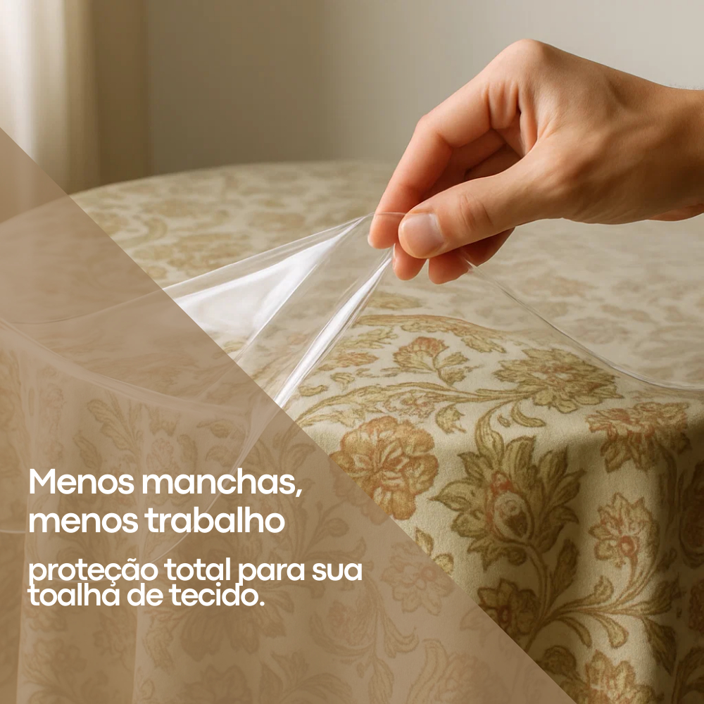 Forro Toalha Plástica Protetor Transparente Impermeável Para Mesa Redonda de 4 Lugares - 1,40M De Diâmetro