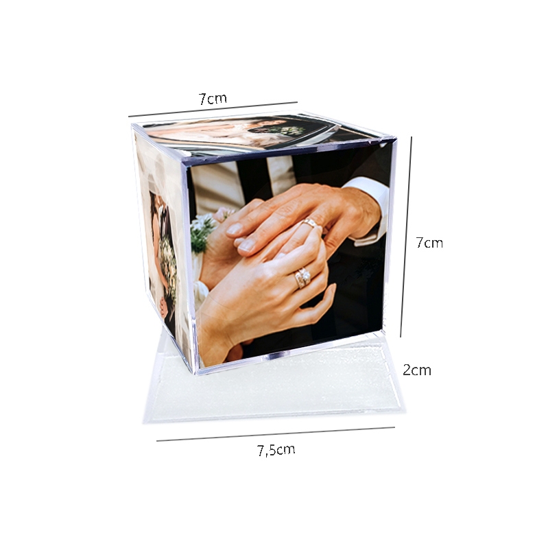 Fabricante de produtos para personalização e revenda, com qualidade comprovada. Envio em até 24h úteis após a confirmação do pagamento, rapidez e segurança na entrega. Foto Cubo 6,2 cm com base Guarde suas melhores memórias neste lindo cubo que comporta 6 fotos (6,2 x 6,2 cm) e gira manualmente 360º. Personalize com sua ideia e transforme-o em um presente perfeito para a família, lembrancinhas ou brindes corporativos. Elegante e cheio de significado! Opções para gravação Papel Fotográfico Glossy A4 180g - para impressora jato de tint (InkJet). ÁREA DE PERSONALIZAÇÃO: 6,2cm (Largura) x 6,2cm (Altura) Especificações Técnicas Material: PS Cristal (Acrílico) Caixinha interna de apoio para foto: Papelão Base Preta: PS Cristal (Acrílico) MEDIDAS DO PRODUTO Altura 9cm Largura 7,5cm ⚠️ ATENÇÃO: PRODUTO FORNECIDO SEM PERSONALIZAÇÃO QUALIDADE, CONFIANÇA E AGILIDADE. +16 Anos no mercado! No caso de dúvidas, entre em contato. Será um prazer atender você!
