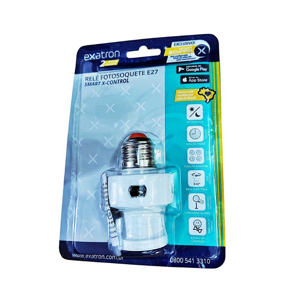 Fotosoquete Relé E27 EXATRON Aciona Lâmpadas Automaticamente com Funções Auto, Timer e Random