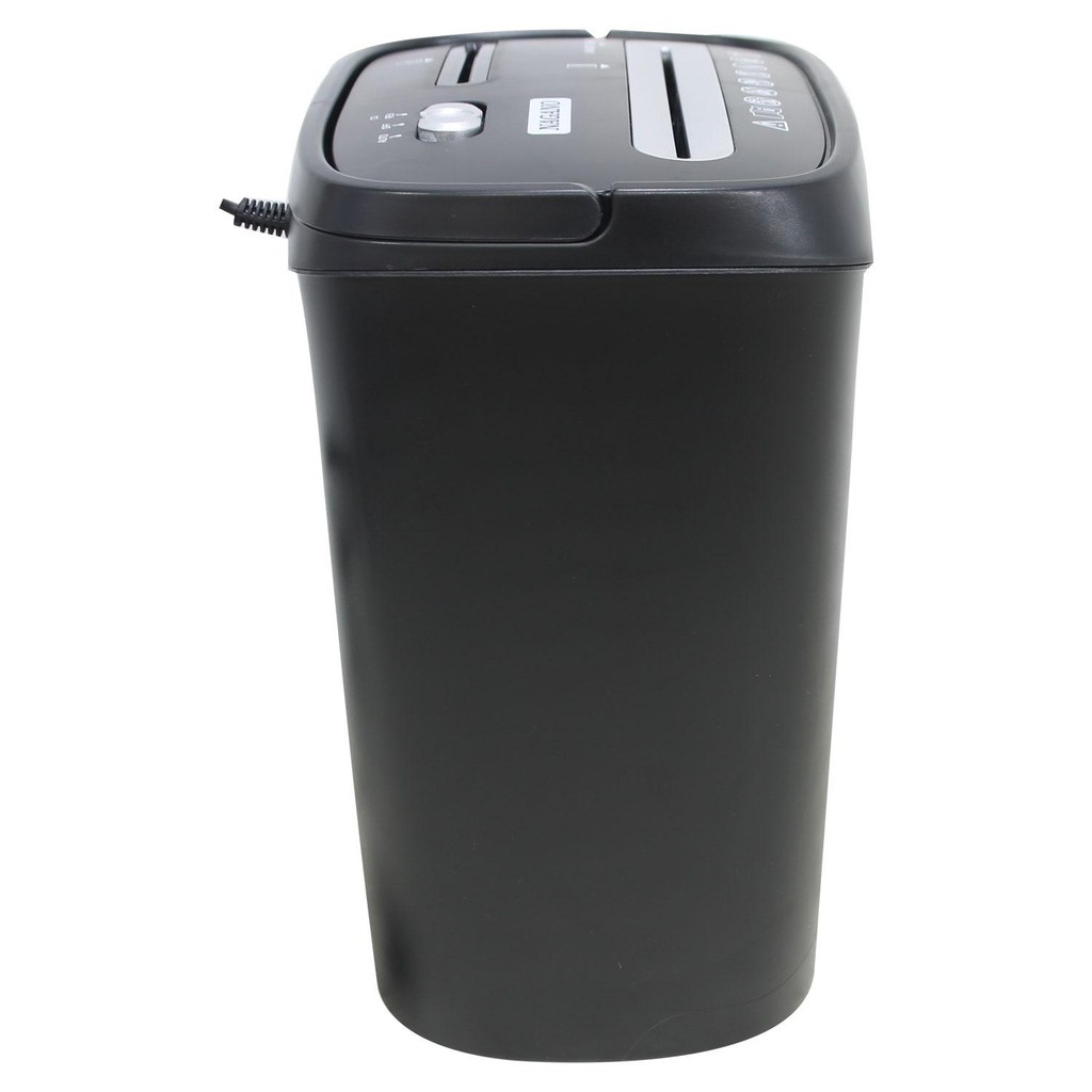 Fragmentadora de papel com capacidade de até 09 folhas. Possibilita a fragmentação de 01 cartão de crédito ou 01 CD/DVD por vez. Equipamento destinado para uso doméstico ou em escritório. Estilo de Corte: corte em tira Nível de segurança P-3 (Norma DIN 66399) Cesto de 15 litros Ciclo de trabalho: Periódico: de 2 min. (De acordo com a temperatura ambiente) 60 min Botão com 3 posições Auto / Off / Rev Proteção contra superaquecimento do motor Baixo nível de ruído (<70db) Sensor automático de presença de papel Largura da entrada: 220mm Capacidade: 09 folhas (A4), 01 CD/DVD, 01 Cartão de crédito.