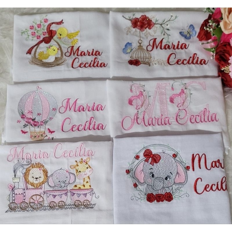 fralda bordadas 70x70/35x35 só bordada personalizada feito