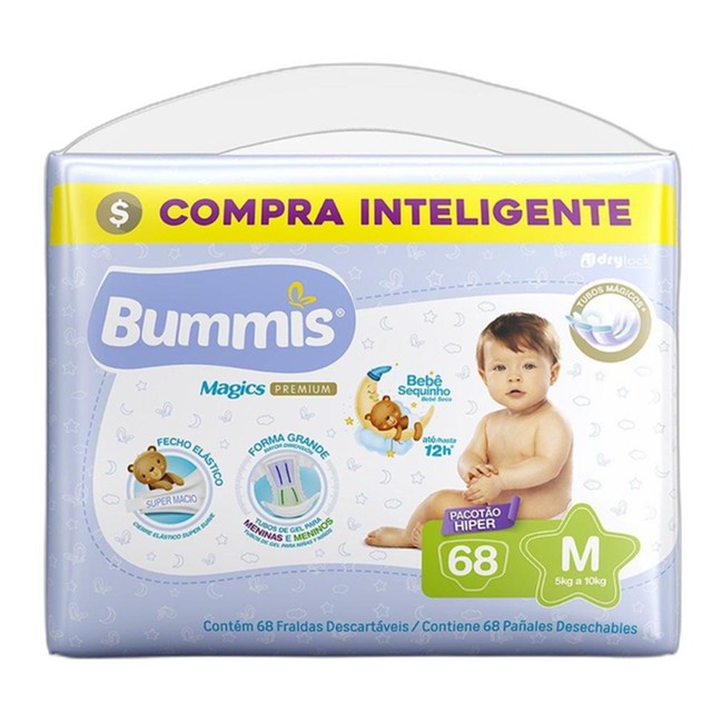 Fralda Bummis Hiper Pacotão M com 68 unidades, alta absorção e conforto para o seu bebê. Proteção eficaz contra vazamentos, mantendo a pele seca e saudável o dia todo. Ideal para o uso diário com praticidade e segurança.