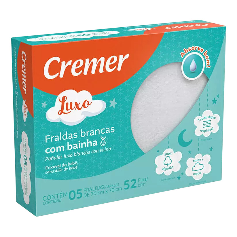 Fralda Cremer Luxo Branco C/bainha Cx/5 Unid. Tamanho 70x68
