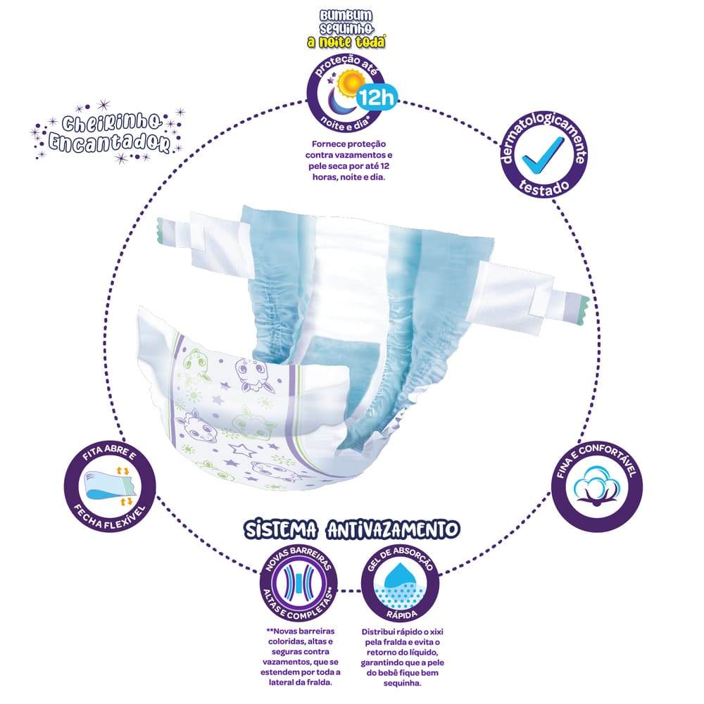 A nova fralda Cremer agora está mais fina e mais confortável, com proteção até 12h contra vazamentos! Além disso a fralda conta com um novo sistema antivazamento, composto por uma nova fita abre e fec