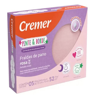 Fralda Cremer Pinte E Borde Com 05 UnidadesFralda Cremer linha pinte e borde com 05 peças, confeccionado em algodão com toque macio e tecido duplo, possui alta absorção.Informações Adicionais:Tamanho: Único Cores: Rosa Composição: 100% Algodão Referência: 661972 Dimensão: 70cm x 70cm Marca: Cremer