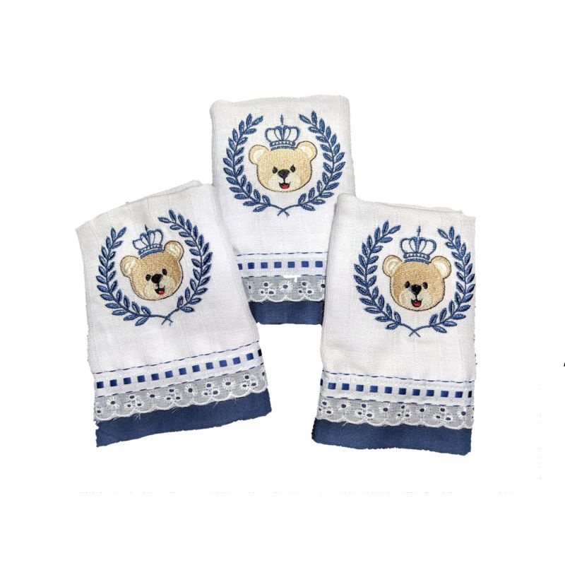 fraldas de boca forrada pacote contendo 3 pçs com barrado estampado medidas 0.35 x 0.35 cm ob. acabamento em pompom ou viés fica a escolha ,favor entrar em contato após a compra