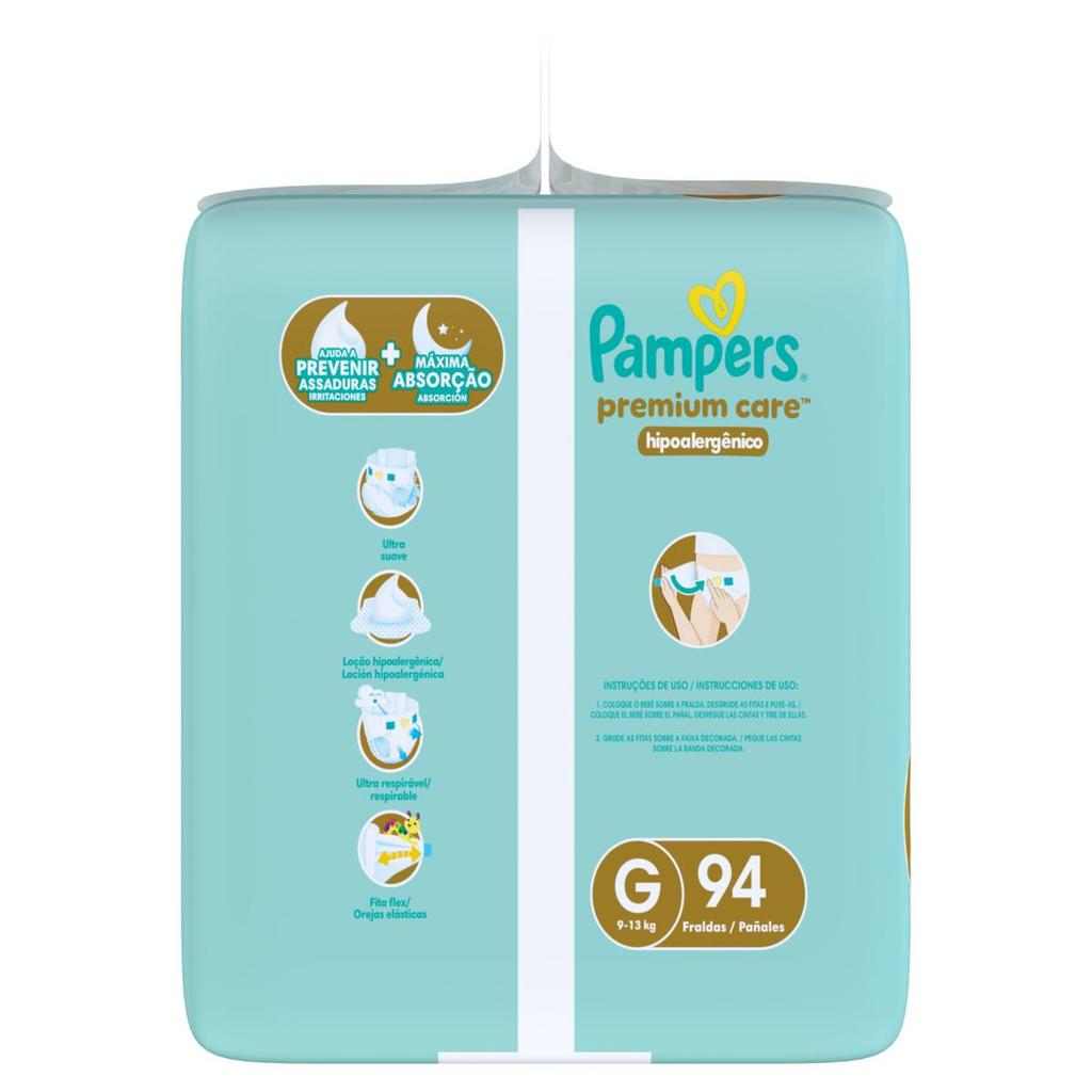 Fralda Descartável Infantil Pampers Premium Care G 9 a 13kg Pacote 94 Unidades