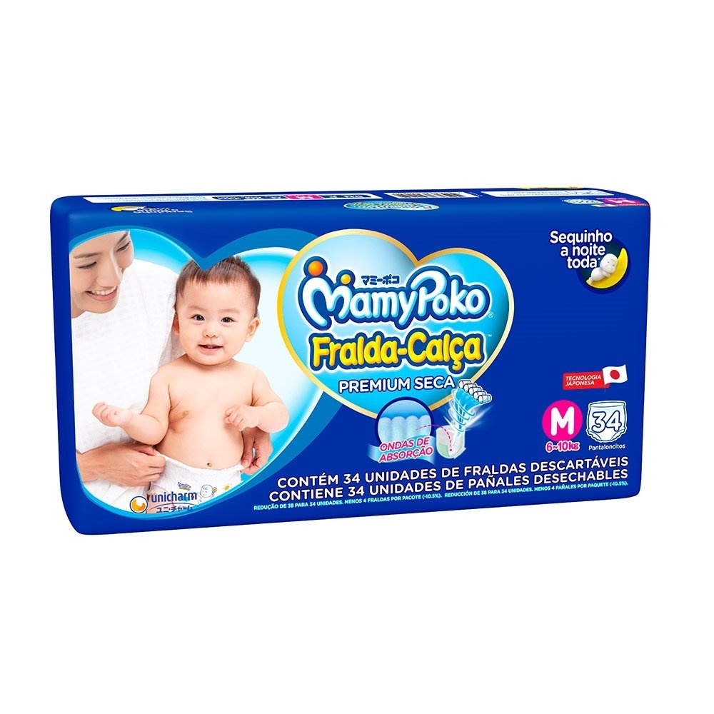 Fralda Descartável MamyPoko Calça Jumbo Tamanho M - 4 Pacotes com 34 Fraldas - Total 128 Tiras