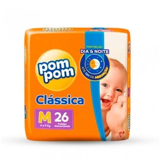 Fralda Descartável Pom Pom Clássica P com 30 Tiras ATACADO BARATO ESCOLHA SEU TAMANHO. *Quantidades: * P-30 - 3 A 5 KG M-26 - 4 A 9 KG G-24 - 7 A 11 KG XG-20 -9 A 13KG XXG- 18 -13 A 17 KG Fralda Pom Pom Clássica, Com Fita abre fecha resistente, Gel com alta absorção, Barreiras nas laterais Seguras,Fralda mais fina e macia para o conforto do seu bebê. Com a Fralda Pom Pom Clássica você poderá ter mais tranquilidade sabendo que seu bebê está protegido e confortável o tempo todo. Ela conta com canais super absorventes e gel que absorve o xixi vezes mais rápido, protege por até 12 horas e mantém a pele sempre sequinha. Com Tecnologia que evita que pese e caia. Além disso, ela possui barreiras que evitam vazamentos e orelhas elásticas que proporcionam maior conforto e melhor ajuste na cintura do bebê.