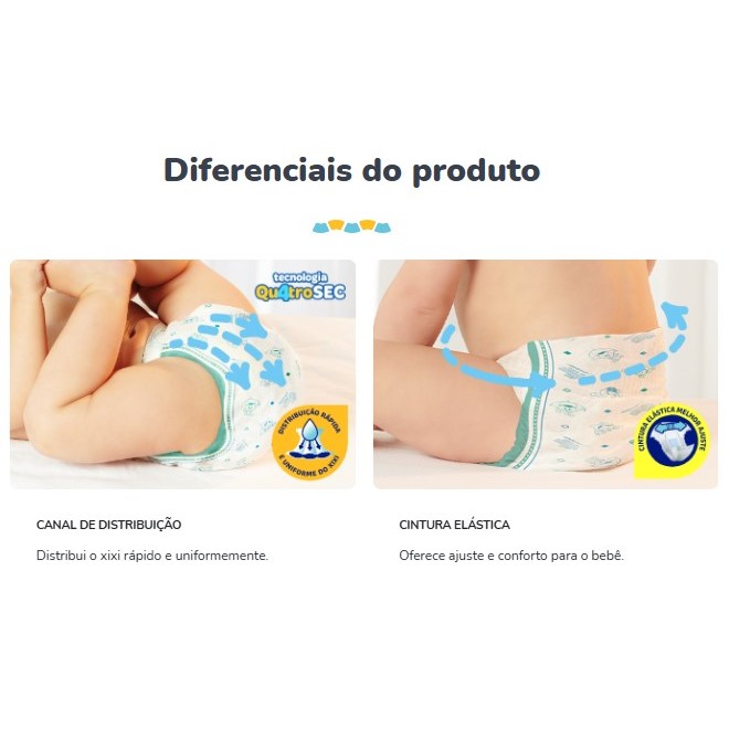 Informações gerais: Público destinado: Bebê Ação esperada do produto: Absorver; ajustar; antivazamento e confortar Modo de uso: 1. Coloque o bebê sobre a fralda aberta com as fitas na parte traseira. 2. Abra as fitas agarradinhas e ajuste a fralda no corpinho do bebê posicionando as fitas sobre a faixa frontal branca. Fornecedor: Turma da Mônica Baby