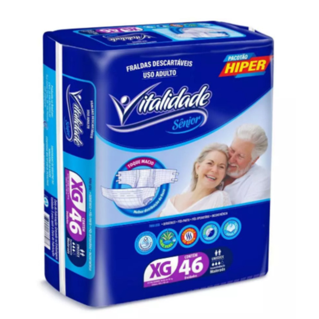 | Fralda Geriátrica Adulto Vitalidade Senior M G XG Alta Absorção Con... este produto | R$ 72,54 | 34% | — | 3 |