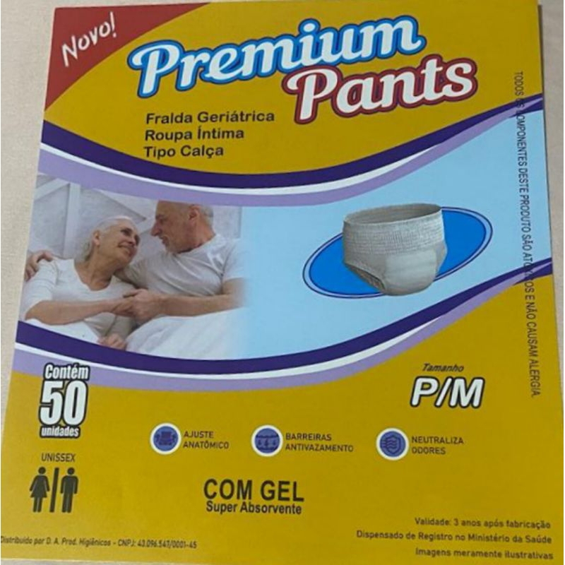 Fraldas para adultos ROUPA INTIMA UNISSEX COM 50 UNIDADES Premium Pants, tecnologia, conforto e muita absorcao tipo severa.