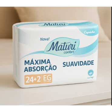 Fralda Geriátrica Capricho Maturi Care Confort Econômica EG com 26 tiras. Indicada para incontinência, oferece absorção eficiente, toque macio e barreiras antivazamento. Mais conforto, segurança e economia no cuidado diário.