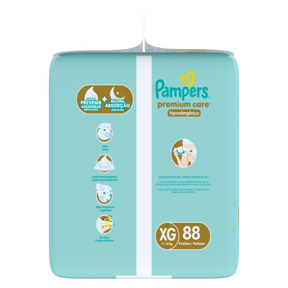Fralda Pampers Premium Care Hipoalergênico Tamanho XG 88 Unidades Descartáveis
