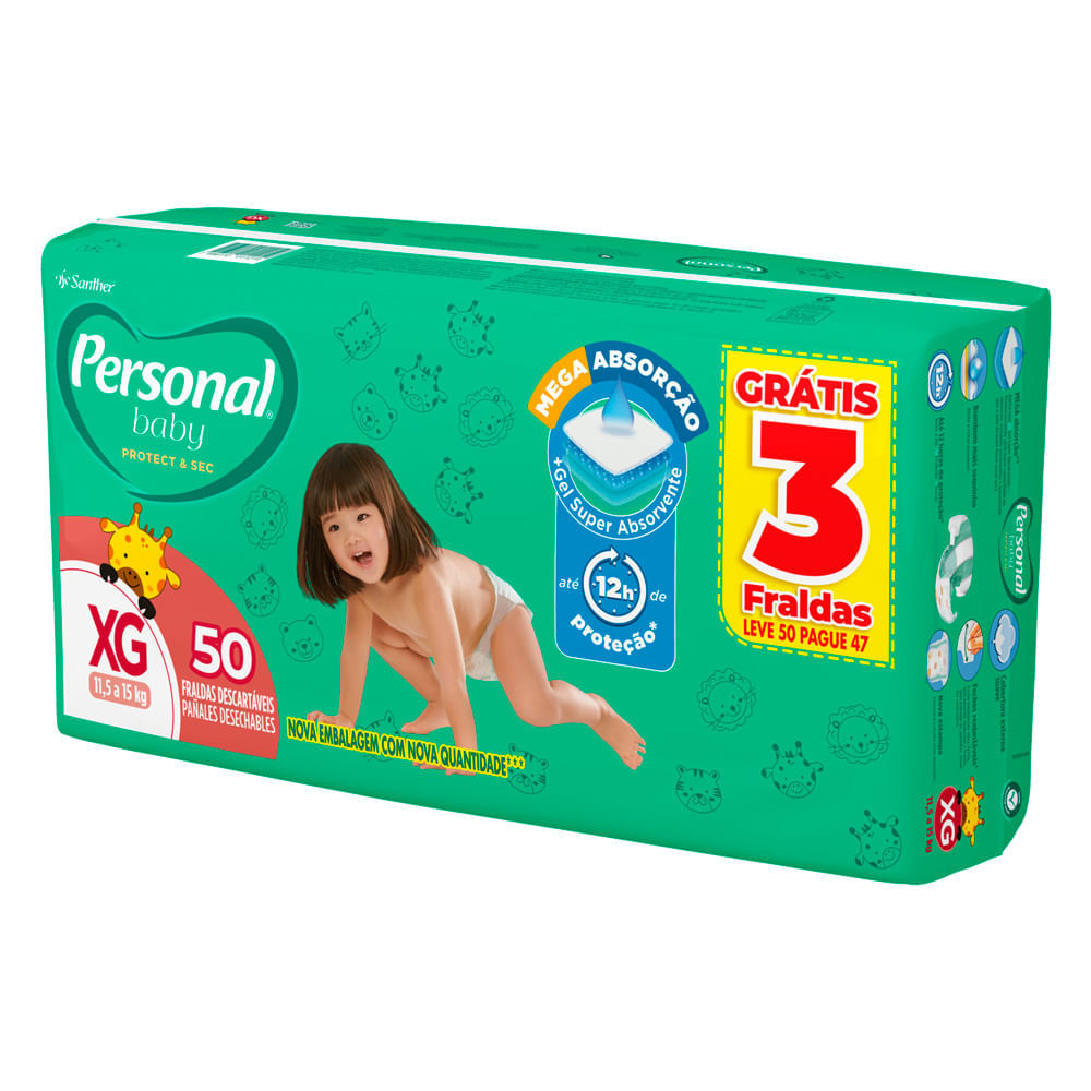 Fralda Personal Baby Protect & Sec Tamanho XG Leve 50 Pague 47 Unidades Descartáveis