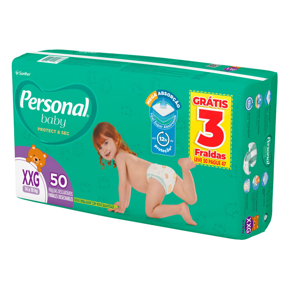 Fralda Personal Baby Protect & Sec Tamanho XXG Leve 50 Pague 47 Unidades Descartáveis