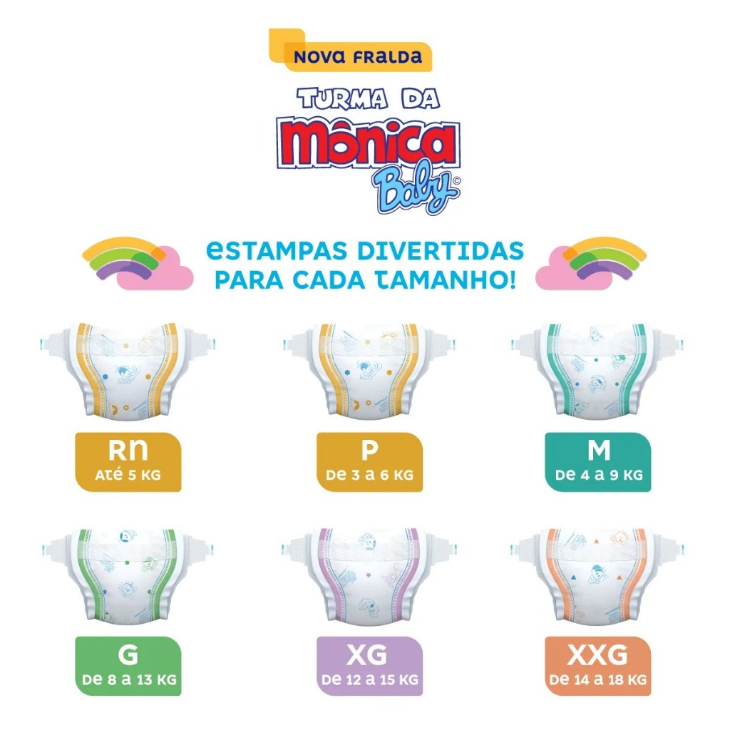 Sobre este item Desenvolvida especialmente para recém nascidos Corte umbilical para um melhor ajuste no corpinho Fechos macios proporcionando maior conforto Fina camada extra que deixa seu bebe sequinho Barreiras anti-vazamento Descrição do produto A Turma da Mônica Baby uniu proteção e conforto em uma nova opção de fralda, para garantir que seu bebê cresça feliz e tenha as melhores lembranças da sua infância. A Nova fralda Turma da Mônica Baby possui a nova Tecnologia QuatroSec para que ele fique calmo, tranquilo e seguro durante o dia e a noite toda. Conta com um exclusivo sistema de canais que distribui mais rápido o xixi, barreiras anti-vazamento e uma fina camada extra que ajuda a manter o bebê sequinho por até 12 horas, além de cintura elástica que proporciona um perfeito ajuste no corpinho.