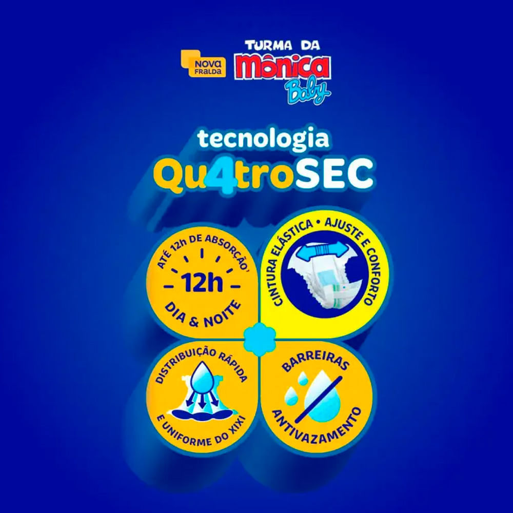 Fralda Infantil Turma da Mônica Baby Mega Tamanho XXG A Turma da Mônica Baby uniu proteção e conforto em uma nova opção de fralda, para garantir que seu bebê cresça feliz e tenha as melhores lembrança