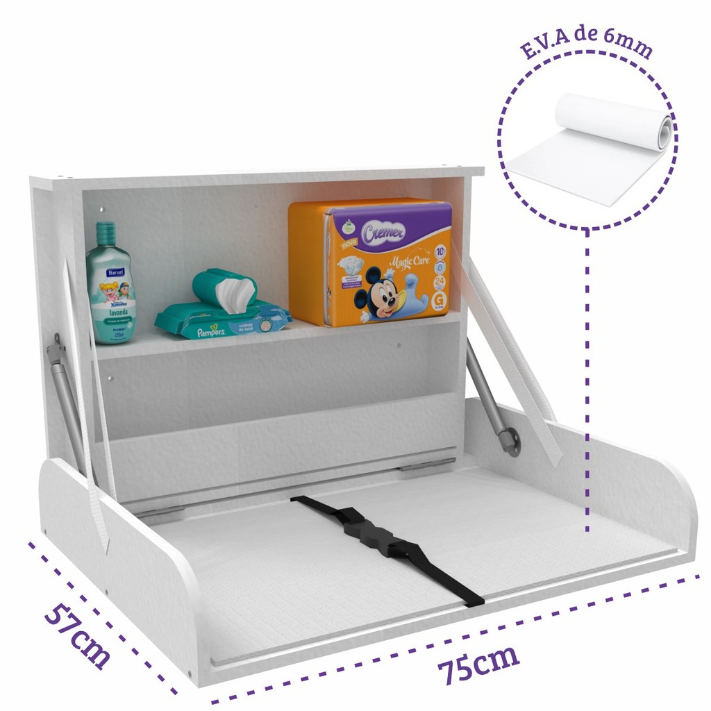 Fraldario Trocador Suspenso Retratil Fixo Com Aparador Horizontal