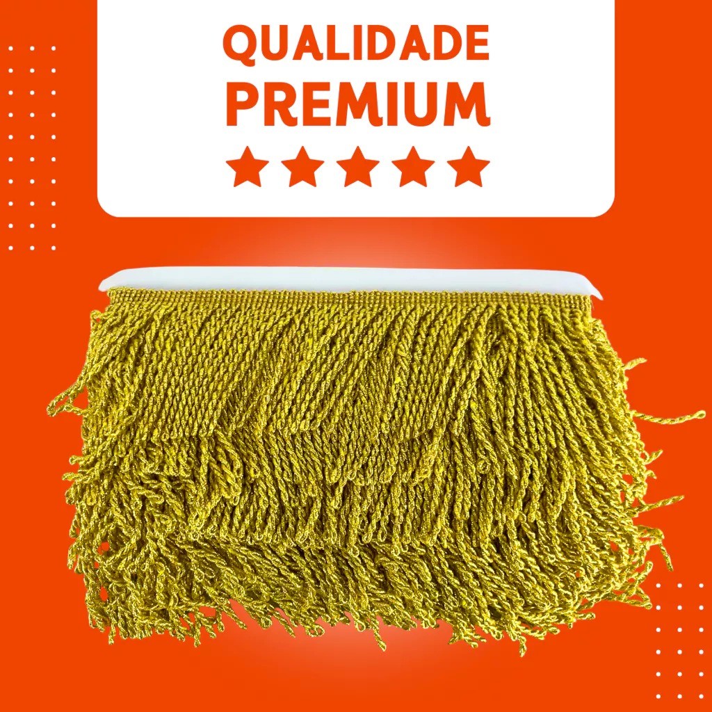 Franja Trançada Rolo com 5 Metros Larguras: 5,0 cm Composição: Tereftalato de Polietileno Cor: OURO Ideal para seus trabalhos de decoração e artesanato, acessório decorativo, acabamentos em vários produtos, finalização de trabalhos manuais, caixas, trabalhos em tecido, trabalhos em scrapbook, enfeites em roupas e acessórios entre outras diversas utilidades. Imagem Ilustrativa podendo sofrer variações de cor ou tamanho conforme configuração de tela ou monitor