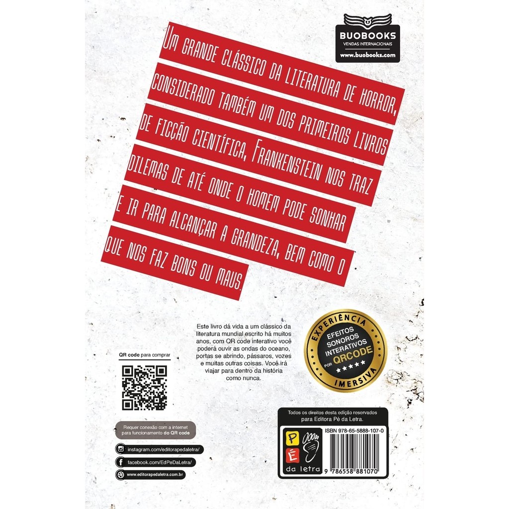 O romance relata a história de Victor Frankenstein, um estudante de ciências naturais, que desde muito jovem se dedicou aos estudos, até que um dia constrói um monstro em seu laboratório. Desde então novas experiências e aventuras começam a surgir, com muitas surpresa, e horror. Mary Shelley escreveu a história quando tinha apenas 19 anos, sendo a primeira obra de ficção científica da literatura e um clássico do terror. Vamos embarcar nessa história? 16x23cm 255 Páginas