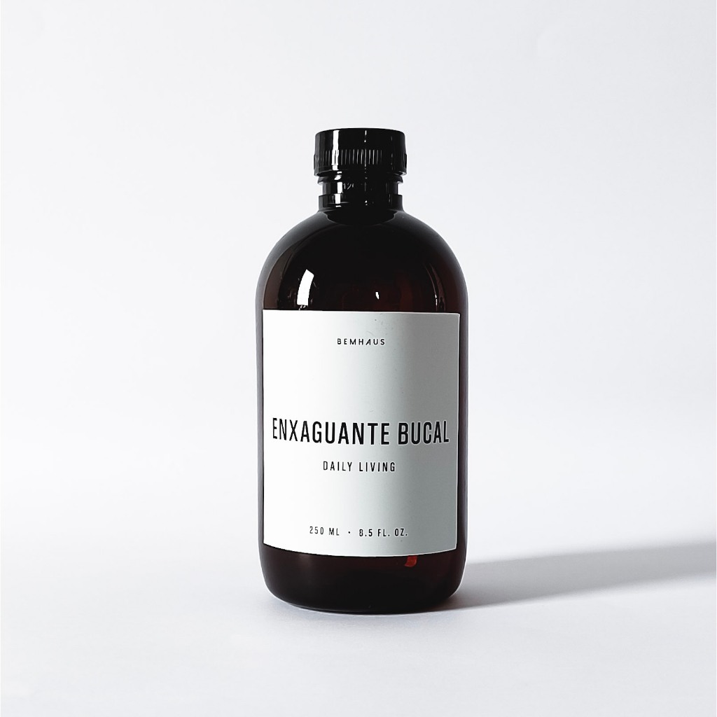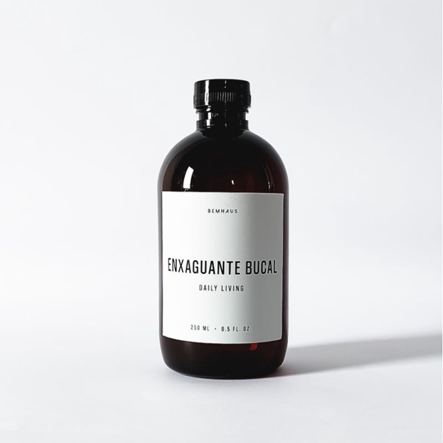 Frasco ambar 250 ml com rótulo ENXAGUANTE BUCAL e tampa de rosca preta. Rótulo branco com acabamento fosco que suporta contato com a água Dimensões do frasco: 13 cm x 5,5 cm Cor do frasco: Ambar Material: Plástico Capacidade 250 ml Frasco vazio Ficou com alguma dúvida? Fale com a gente pelo chat. Bemhaus 🖤