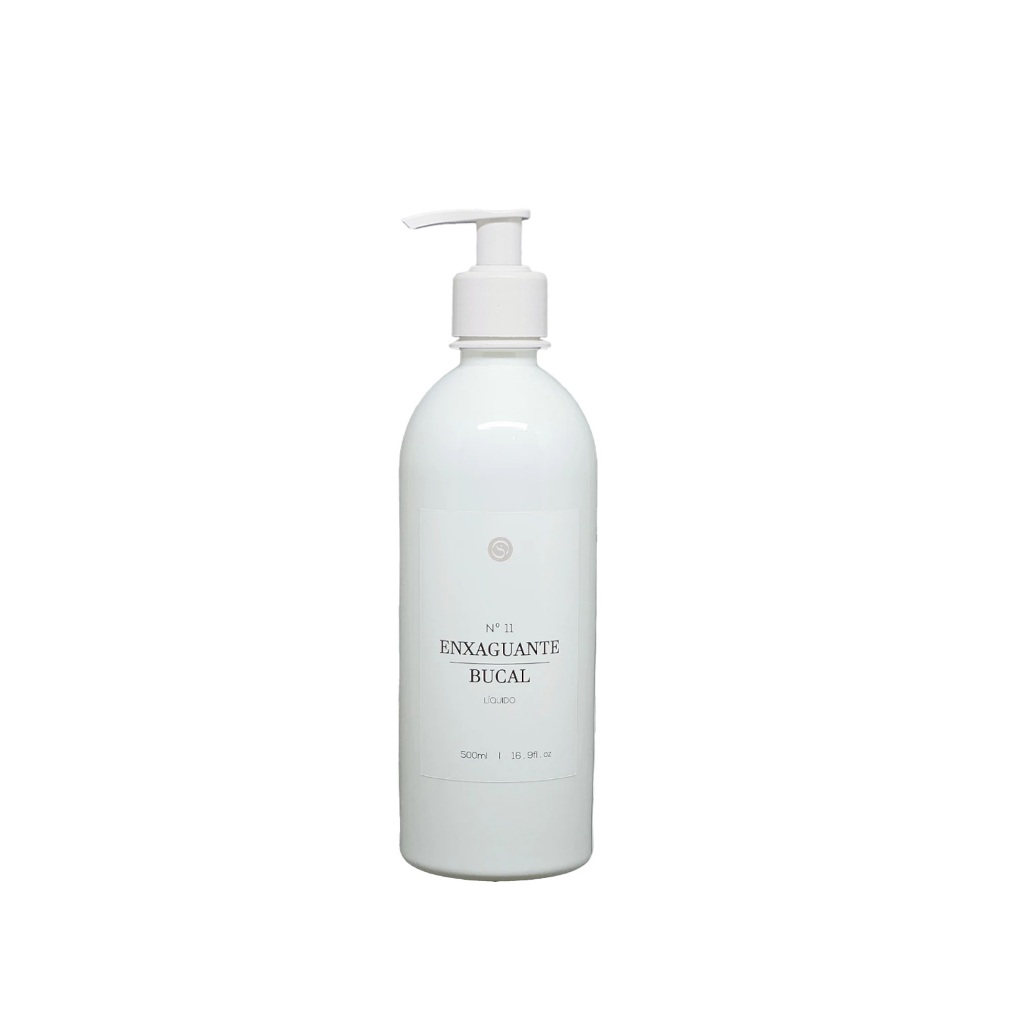 Frasco Branco Plástico Rótulo Enxaguante Bucal 500ml Com Tampa ou Válvula Para Organização Banheiro