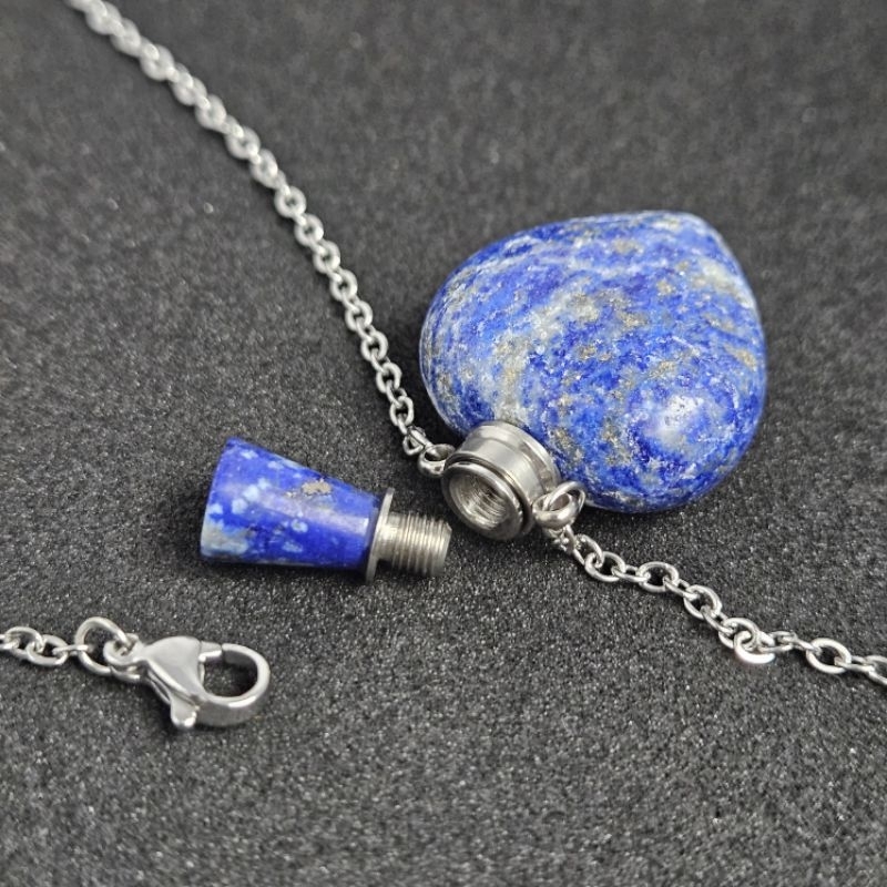 frasco de perfume de pedra natural en formato de coração (atenção so e o frasco não comten perfume ) corrente aço inox tamanho da corrente 55cm pingente de pedra natural (coração) peso do pingente de 10 granas a 12granas tamanho do coração 2cm + 1cm da tampa.