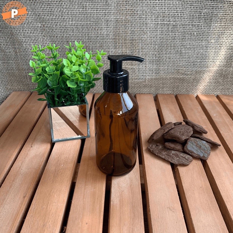 Frasco De Vidro Âmbar 200ml C/ Válvula Pump (20 Unidades)