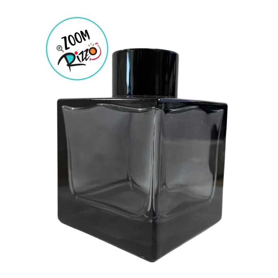 Frasco Difusor De Vidro Preto Com Tampa Preta e Batoque - Rosca 24/410 - 100ml - 8x5,5cm - 1 unidade - Rizzo
