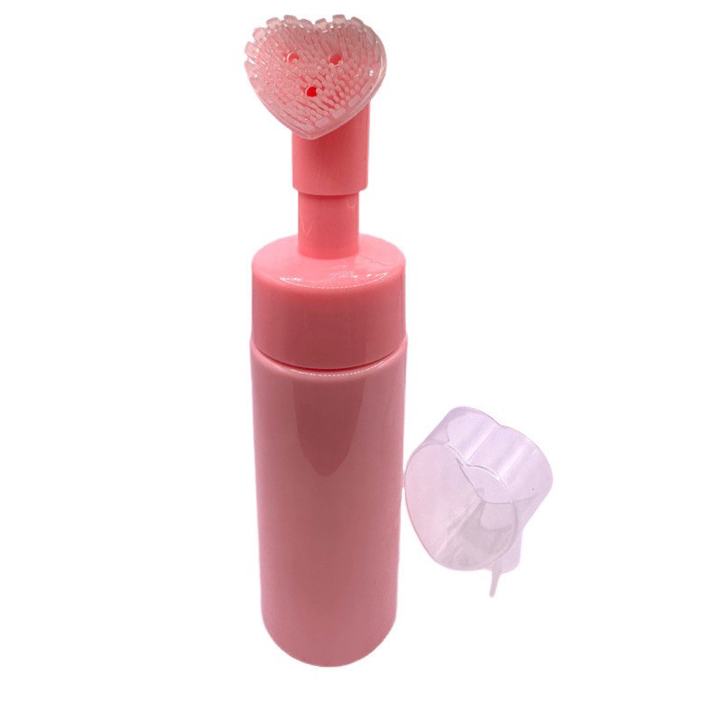 Frasco Pump Espumador Rosa com Escova de Silicone em Coração Helen Color – Limpeza Facial e Massagem (100ml/150ml)