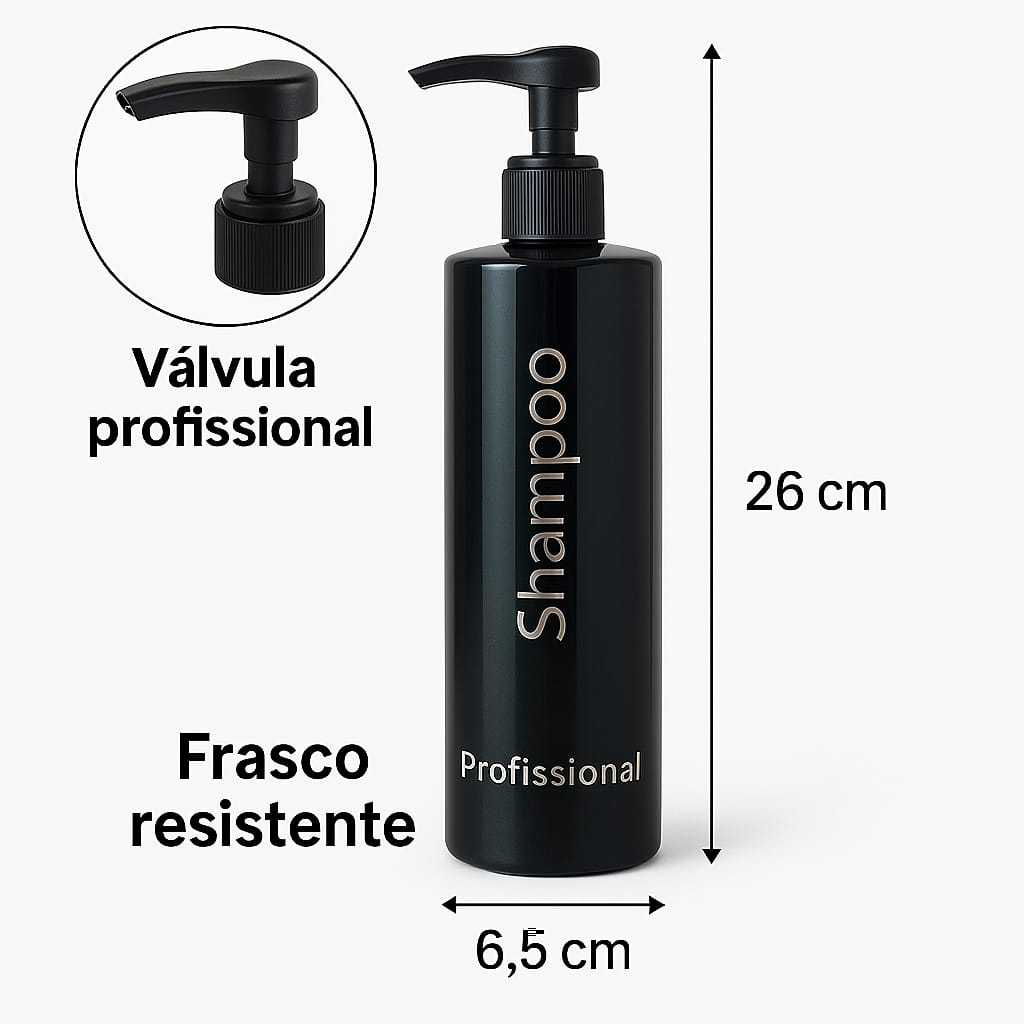 Frasco shampoo 500ml Condicionador 500ml válvula profissional Cosmeticos Frasco 500ml Vazio com Válvula Pump Profissional Reutilizável para Shampoo, Condicionador Kit com frascos pretos de 500ml para shampoo e condicionador, com válvula pump profissional. Ideal para quem busca embalagens resistentes, reutilizáveis e com visual sofisticado. Especificações Capacidade: 500ml cada frasco Cor do frasco: Preto Material: Plástico PET resistente Válvula: Pump profissional com rosca 28/410 Frascos reutilizáveis e recarregáveis Indicado para: shampoo, condicionador, sabonete líquido, cremes e loções