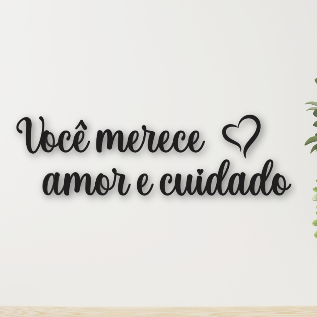 Frase Decorativa Você Merece Amor e Cuidado Letreiro em MDF 3MM Preto Sala / Studio / Loja