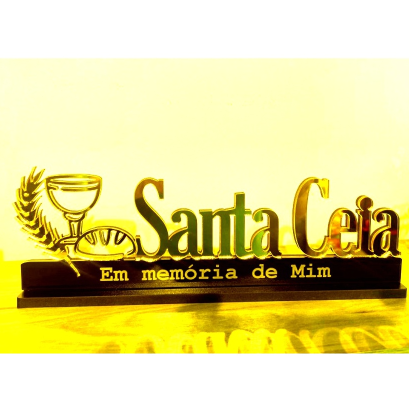 | Frase Santa Ceia 30 cm em MDF e Acrílico dourado para mesa este produto | R$ 39,90 | — | 5.0/5 | 126 |