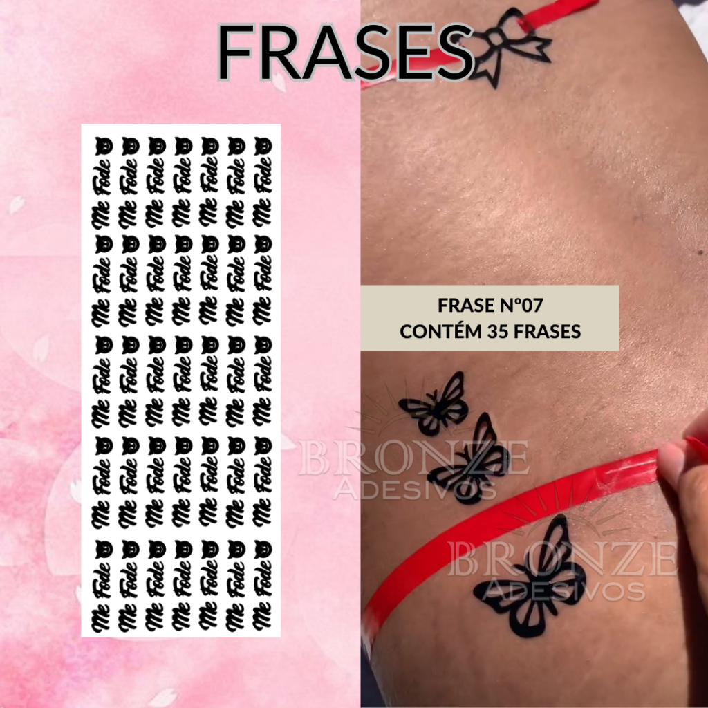 Frases diversas para Bronzeamento. Cartela de frase, cada modelo contém uma quantidade de adesivos. Informar a numeração escolhida no CHAT, não entramos em contato para perguntar. Caso não informe será encaminhado o modelo disponivel no estoque. Tamanho das frases muda de acordo com o modelo. Porém medem entre 5 a 10cm. DEPENDENDO DA FRASE. Ao finalizar a compra por favor enviar o modelo que deseja. Cartela não contem fita Bronze Adesivos Insta
