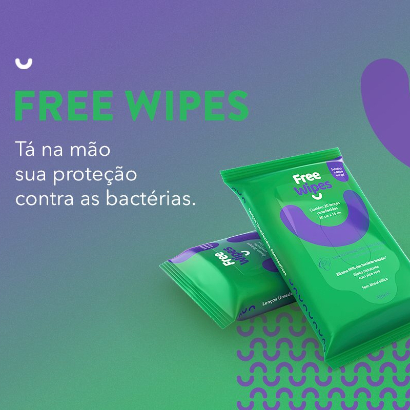 LEVE 12, PAGUE 10! Free Wipes são lenços umedecidos antissépticos que eliminam 99% das bactérias, ideal para higienização das mãos antes e depois de entrar em contato com maçanetas, tampa do vaso sanitário, mouse, teclado, celular, etc. Proporciona limpeza profunda, com efeito hidratante e fragrância de Aloe Vera. O Free Wipes é mais completo que o lenço umedecido tradicional e mais prático que o álcool em gel. Caixa com 12 unidades Cada pacote contém 20 lenços umedecidos 20cm x 15cm Leve Free Wipes sempre com você. Quando não puder lavar as mãos com água e sabão, puxe um Free Wipes do pacote. Quem disse que limpeza e hidratação não andam juntas? Não resseca Free Wipes possui efeito hidratante e deixa um agradável perfume de aloe vera nas suas mãos. Prático e compacto Ideal para carregar na bolsa, na mochila ou na mala. Free Bite acompanha o seu dia a dia e faz parte da sua rotina. Elimina 99% das bactérias testadas Cotidianamente podemos ser expostos ao contato com diversas bactérias. Muitas vezes até mesmo ao tocar em superfícies que acreditamos estarem limpas. Por isso, Free Wipes possui a capacidade de eliminar 99% das bactérias testadas. Contém 20 lenços umedecidos 20cm x 15cm Composição: Nonwoven (Polyester/Viscose), Aqua, Propylene Gycol, PEG-75 Lanolin, Aloe Barbadensis Leaf Extract, Phenoxyethanol, Cocamidopropyl Betaine, Polysorbate 20, Triclosan, Disodium EDTA, Citrid Acid, Sodium Benzoate, Parfum, Benzyl, Salicylate, Butylphenly Methylpropinal, Citral. Citronellol, Geraniol, D-Limonene e Linalool. Dúvidas frequentes: Free Wipes resseca as mãos? Não. Free Wipes limpa e hidrata a pele das mãos ao mesmo tempo. Free Wipes limpa de verdade? Sim. Free Wipes elimina até 99% das bactérias testadas. Quando devo usar Free Wipes? Use Free Wipes no seu dia a dia: para higienização das mãos antes e depois de entrar em contato com maçanetas, tampa do vaso sanitário, mouse, teclado, celular, etc. Lembrando que a forma mais adequada de higienizar as mãos é lavando-as corretamente com água e sabão. Free Wipes tem cheiro? Free Wipes tem uma gostosa fragrância de Aloe Vera.